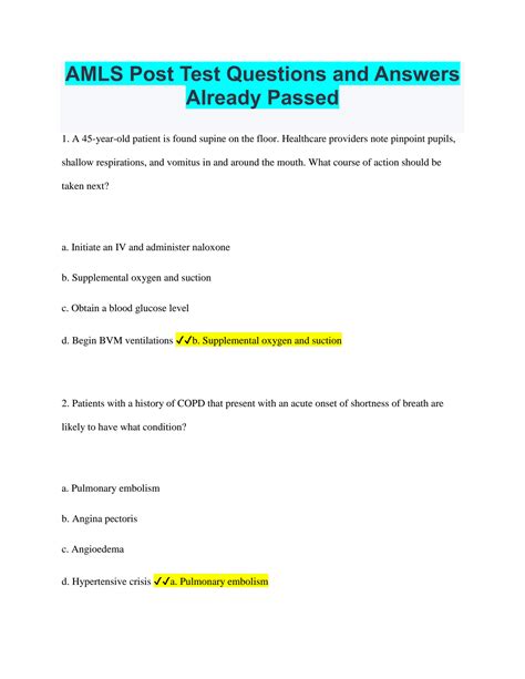 Read AMLS POST TEST ANSWERS 2011 PDF Google eBookstore